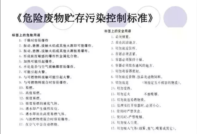 4.不同種類危險廢物應(yīng)有明顯的過道劃分,墻上張貼危廢名稱,液態(tài)危廢需將成裝容器放至防泄漏托盤內(nèi)并在容器粘貼危險廢物標(biāo)簽,固態(tài)危廢包裝需完好無破損并系掛危險廢物標(biāo)簽,并安要求填寫。